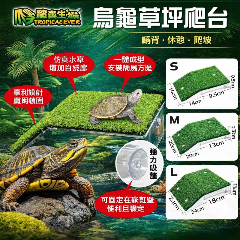 1. 仿真水草,模擬自然環境,方便烏龜攀爬,符合造景需求 2. 內含吸盤可穩固的吸附於缸壁上,水陸分離讓烏龜休憩、曬背 3. 爬台面積大,可搭配UV燈,有利於促進烏龜健康與甲殼的成長 4. 一體成型設計,安裝清潔更方便,材質安全無毒耐用,