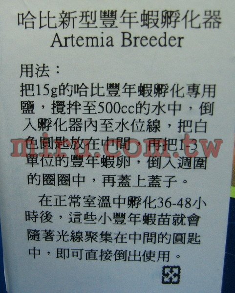 把15g海水鹽放入500ml水中攪拌後倒入孵化器內至水位線,把白色圓匙放在中間,再將1-3個單位的豐年蝦卵倒入圈圈中,蓋上蓋子。在正常室溫中孵化36到48小時後,這些小豐年蝦苗就會隨著光線聚集在中間的圓匙中,即可直接倒出使用。