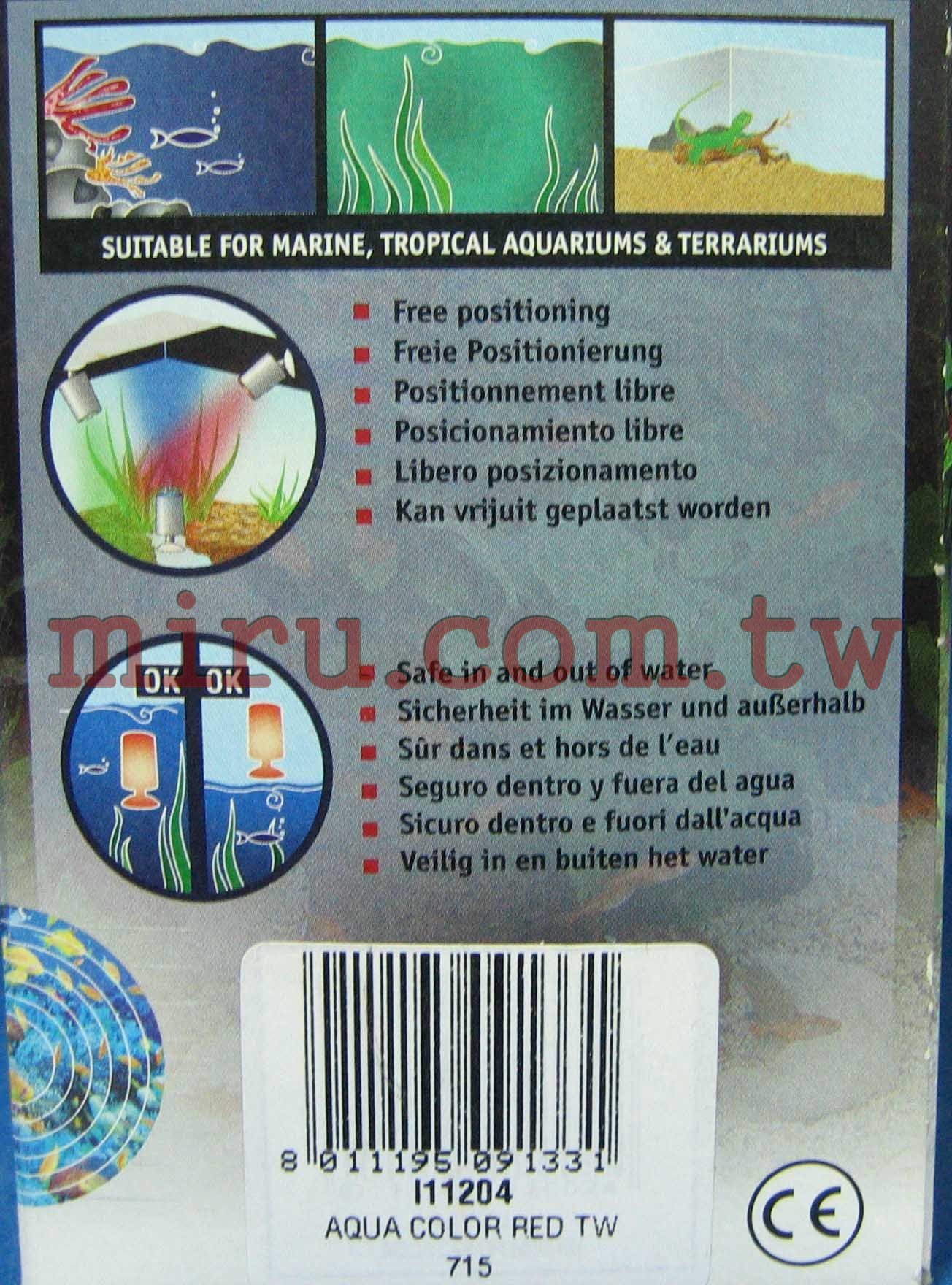 投射於水族箱中,增加魚缸的色彩變化,可乾濕兩用, 亦可配合Hydor溶氧馬達,使打出的空氣夾帶彩色的光澤, 增加魚缸的光感變化。 |