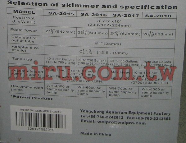 | WEIPRO 外掛式蛋白除沫器(2011、 2013、 2015) | |