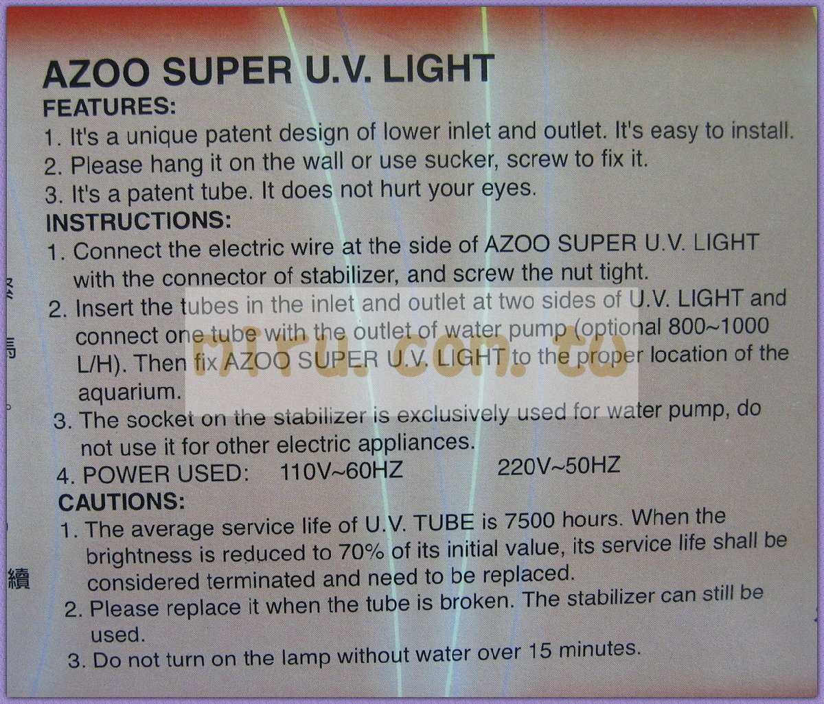 | 您好.1.目前AZOO沒有單賣這一款燈管 2.這一款的燈管是FL.T8的 3.是UV-C燈原 4.表面看不光.外罩是乳白色.接頭是黑色 5.外罩是朔膠材質 謝謝 |