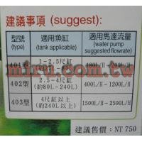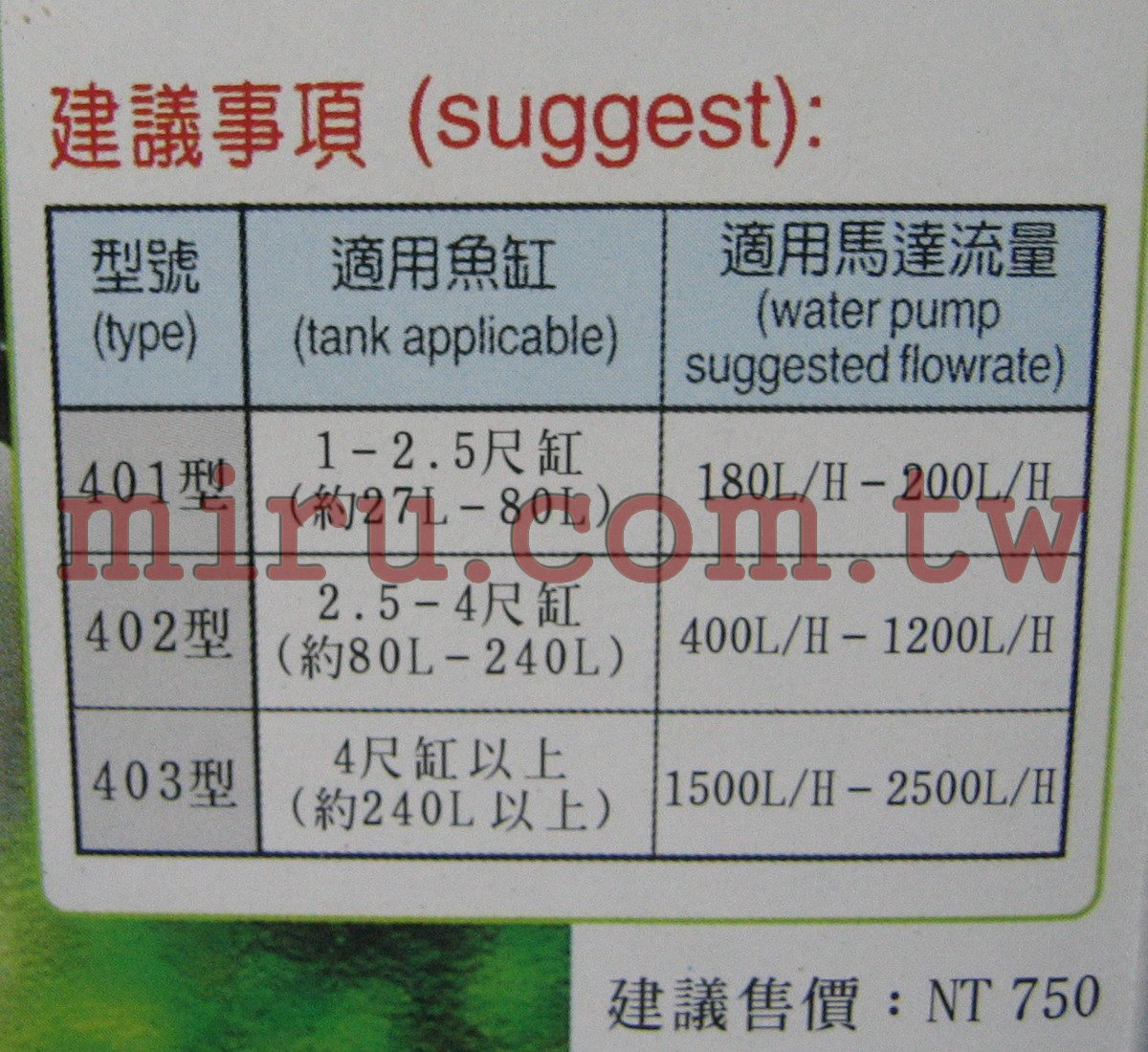 401型可用2.5尺缸以下,適用1-2.5呎缸,適用馬達水量(180~200L/h)---尺寸約14高*5直徑cm |