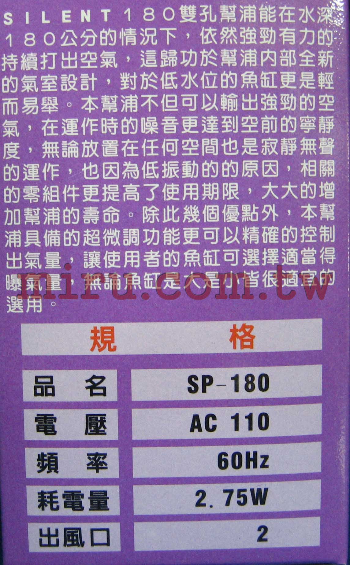 雙孔SP180打氣水深可達180cm