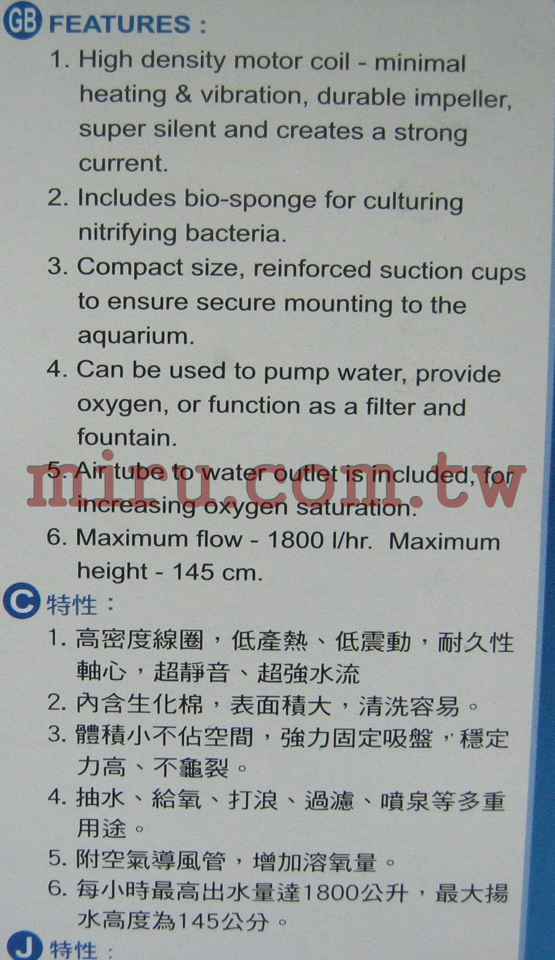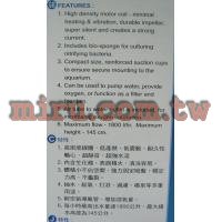 1. 適用淡水缸、海水缸、池塘等過濾之使用。 |