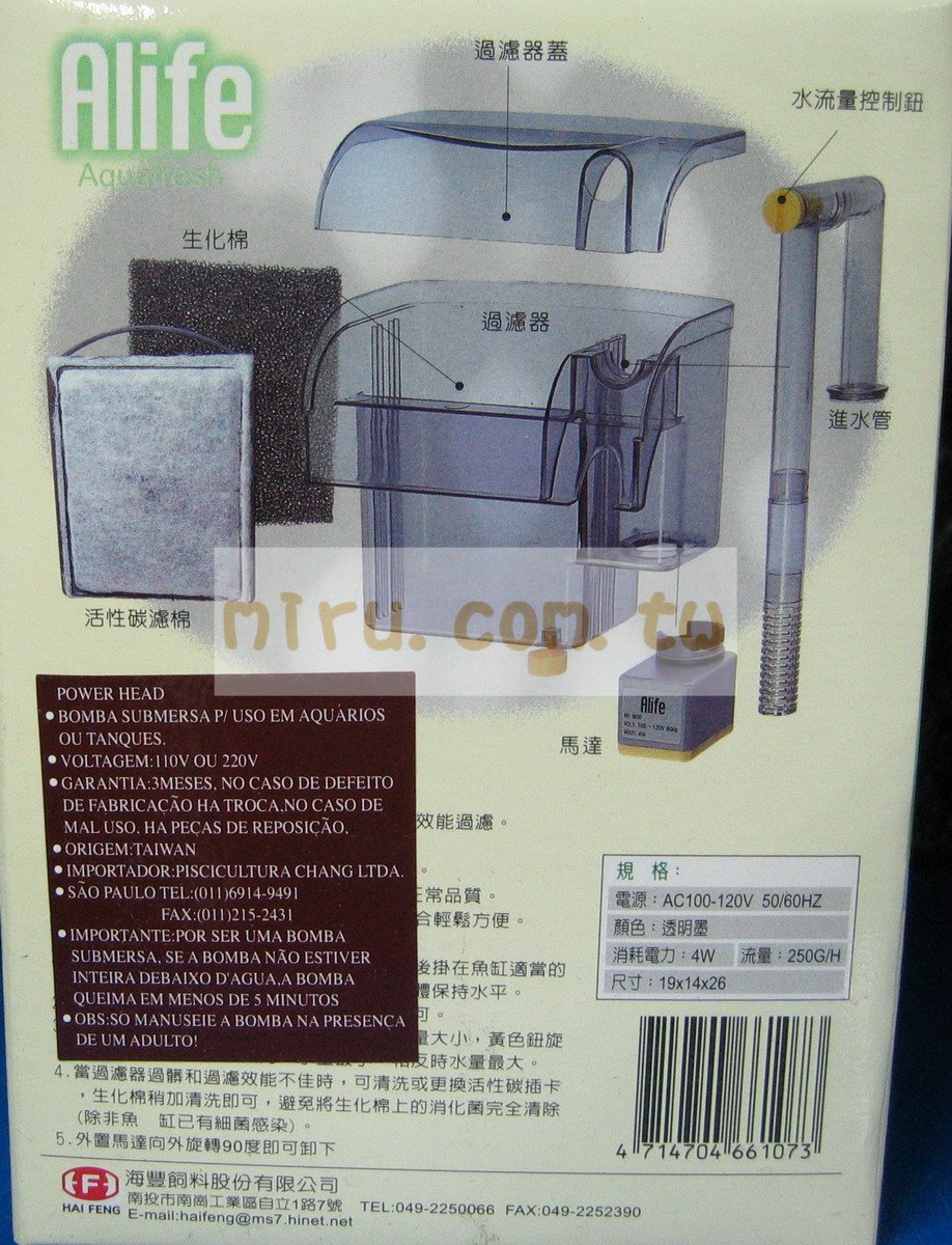 > 過濾設備,馬達 > 過濾器(外置、外掛) > 海豐Alife 高效能外掛生化過濾器(250型)