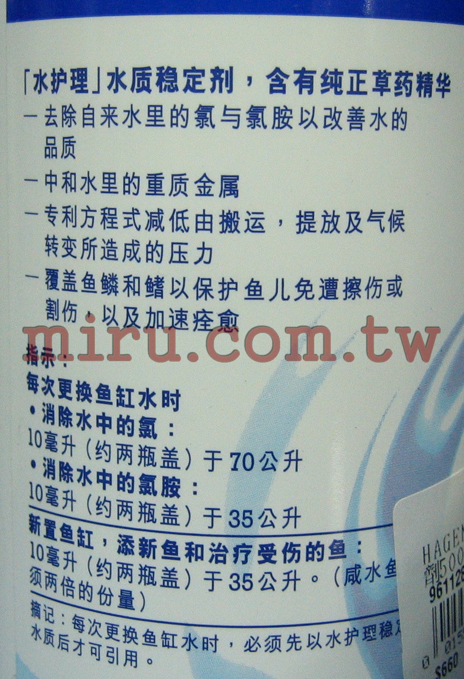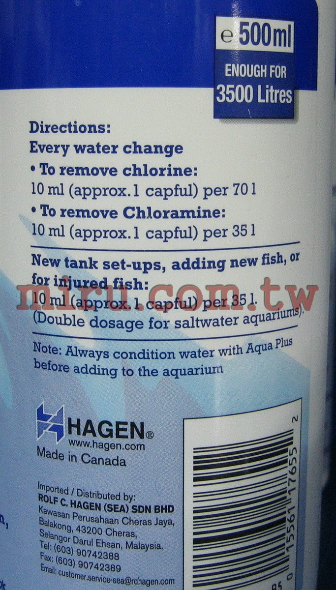 | Hagen 水質穩定劑(快速除氯)120ml,250ml,500ml,2L | |