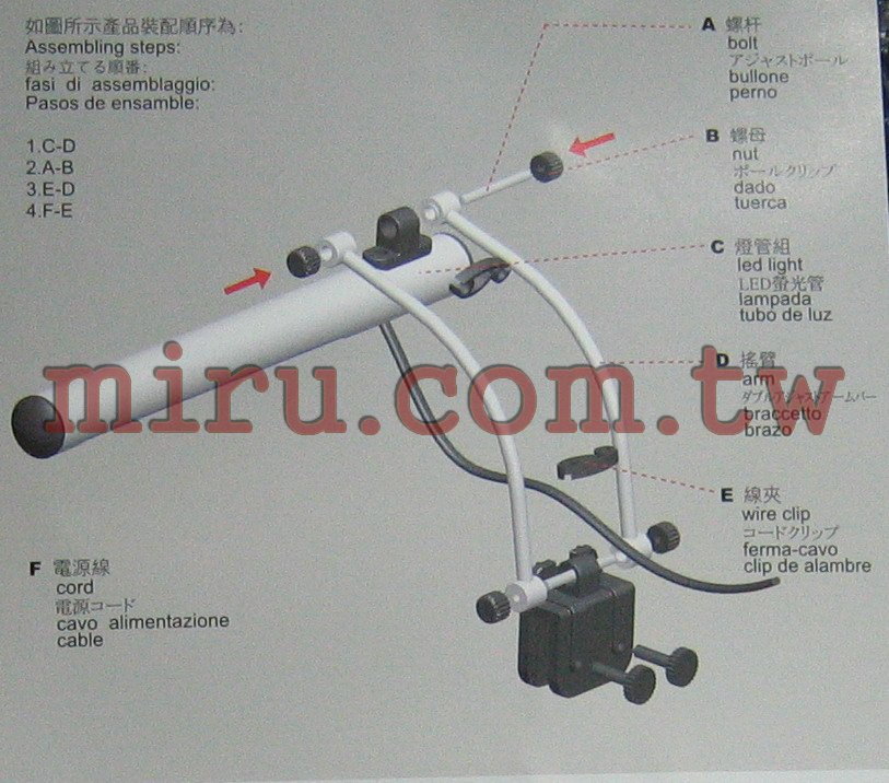 > 照明設備 > 照明燈具FL.PL,系列 > AZOO-海霓燈~24顆LED圓柱夾燈(附7W燈管)