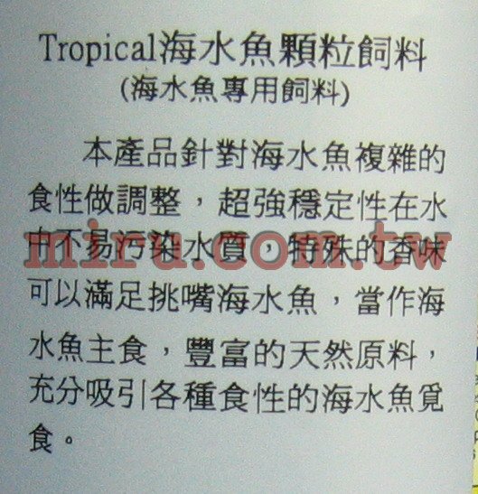 | 德比克Tropical海水魚顆粒150ml | |