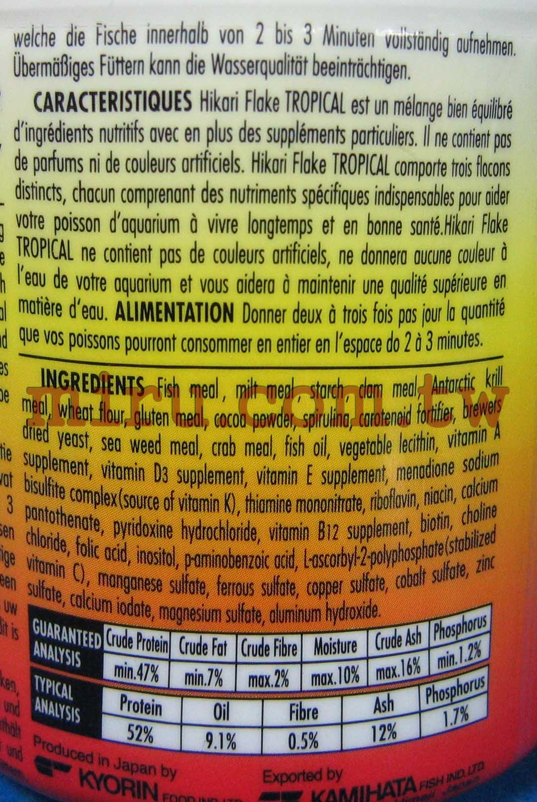 > 飼料,餵食設備 > 小型魚/孔雀魚飼料/燈科魚飼料/幼魚飼料 > 日本原裝Hikari高夠力 Hikari Flake Tropical 小型魚薄片