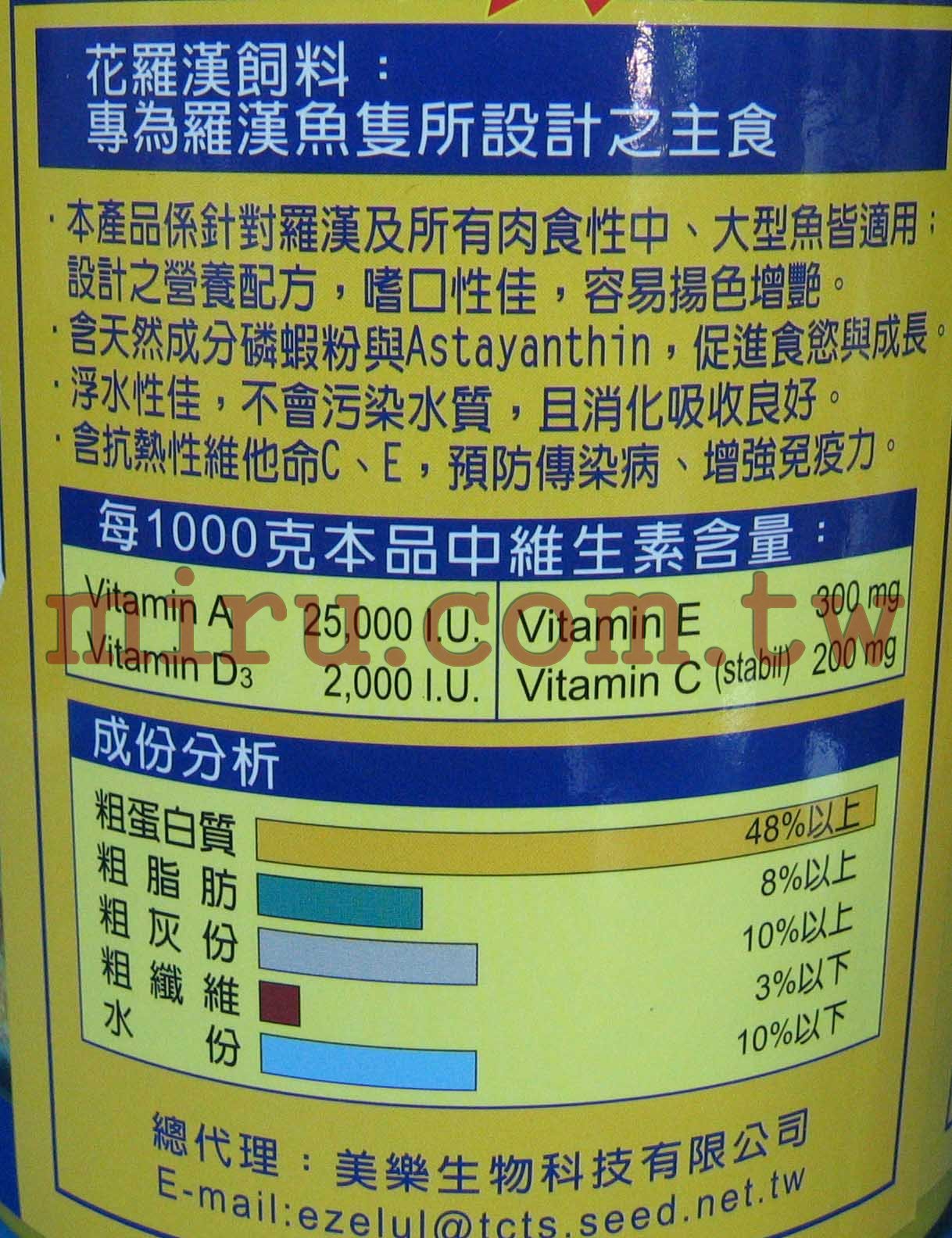 本產品係針對花羅漢及所有肉食性中,大型魚皆適用,