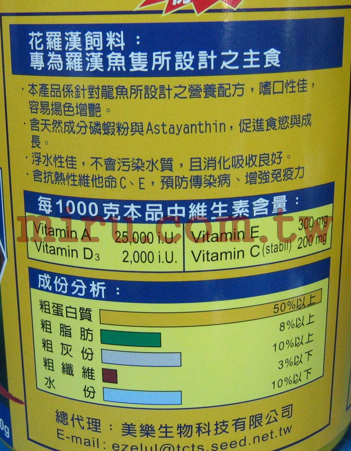 粗蛋白質 粗脂肪 粗灰份 粗纖維 水份 300g |