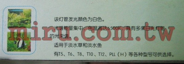1. 藍白色燈管。 2.光譜能量集中,色溫高達10000K,具有多束日光燈的光束值。 3.適用於海水水草,海水魚。 |