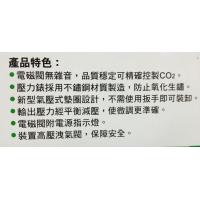 1. 採用德國電磁閥,可精確控制CO2。 2. 配裝壓力調節器,可任意調節壓力。3. 裝置高壓排氣閥,保障安全。 4. 新型氣壓式墊圈設計,不須使用板手即可裝卸。 |