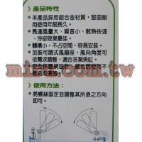 | 商品說明 | 本產品採用鋁合金材質,堅固耐用使用年限最久 馬達風量大 噪音小 散熱快速 冷卻效果最佳 體積小,不占空間,安裝容易 加裝可調式風扇座,風向角度可依需求調整,適合各類魚缸 安全保護網設計,避免因使用不當造成傷害 |