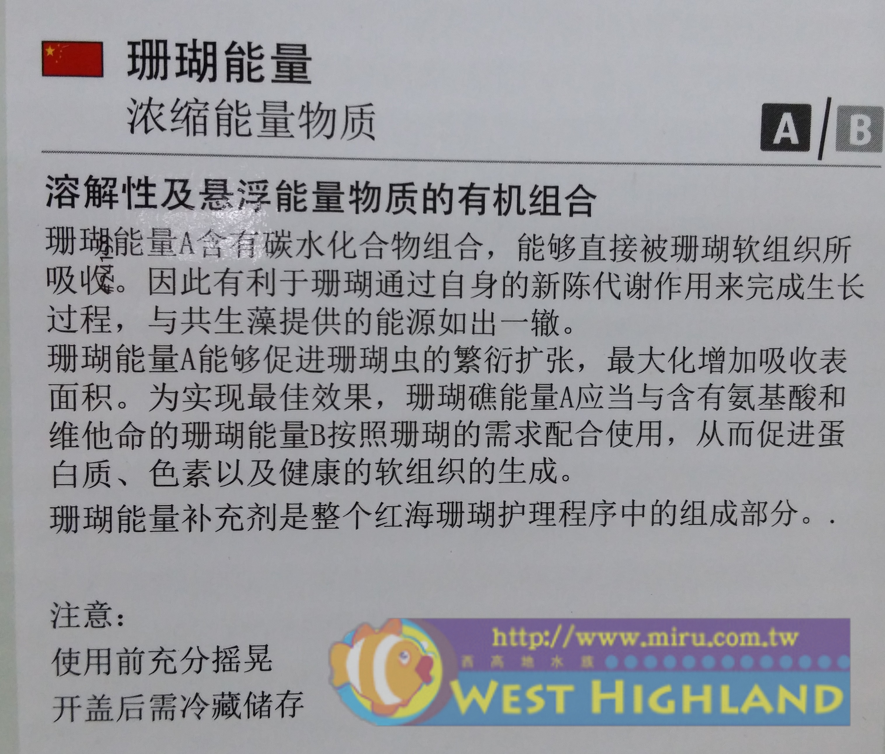 1.是可溶性及懸浮能量物質的有機混合物 2.含有碳水化合物組合 3.能夠直接被珊瑚軟組織吸收 4.有利於珊瑚通過自身的新陳代謝來完成生長過程 5.與蟲黃藻提供的能源如出一轍 6.能促進珊瑚蟲的繁延擴張最大化增加吸收表面積 7.建議與珊瑚能量食物B(胺基酸)配合使用 |