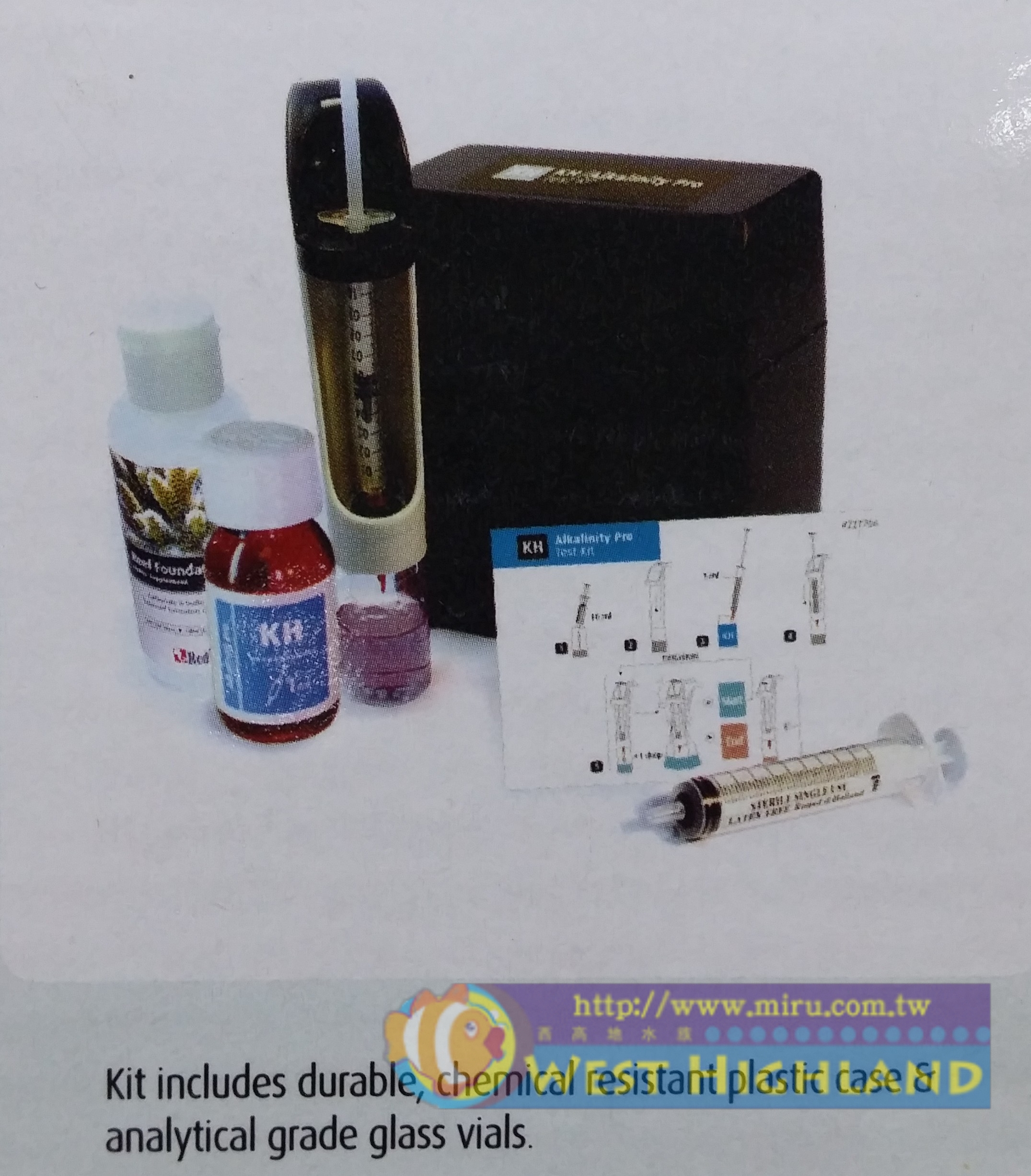 紅海鹼度測試組是一款高級的滴定測試工具, 精確度可達0.05meq/L (0.14dKH) |