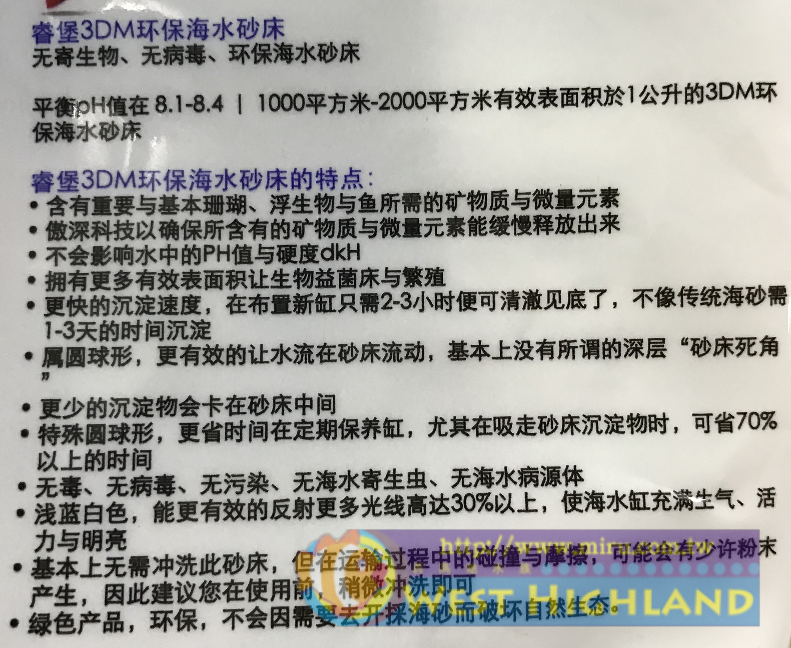 1. 無毒、無病毒、無汙染、無海水寄生蟲、無海水病原體、環保海水底砂床。 2. 平衡魚缸中的PH值在海水魚最適合的PH8.1-8.4 之間。 3. 含有重要與基本珊瑚、浮游生物與魚所需的礦物質與微量元素。 4. 更快的沉澱速度,在佈置新缸只需2~3小時便可清澈見底,不像傳統海砂需 1~3天的時間沉澱。 5. 特殊圓球狀,更有效讓水流在砂床流動,基本上沒有所謂的深層“砂床死角” 6. 淺藍白色,能更有效的反射更多光線高達30%以上,使海水缸充滿生氣、 活力與明亮感! 7. 綠色環保商品,不會因為需要開採海砂而破壞自然生態。 8. 3DM珊瑚砂適用於海水缸,東非三湖產區(馬拉威湖、坦干伊克湖 、 維多利亞湖)各式慈鯛魚鹼性水域缸 |