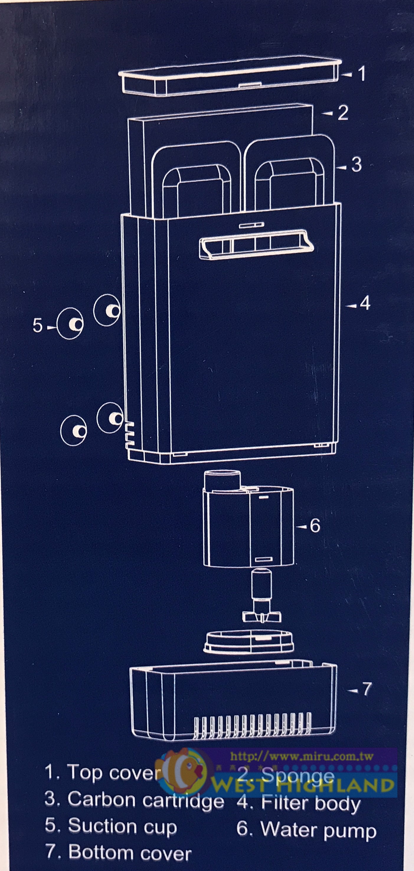 尺寸-約 60 *55 * 140 mm 耗電量:3.4W 水流量: 180 L/H 適合魚缸: 20L 以下 最低可使用水位: 約 5 cm |