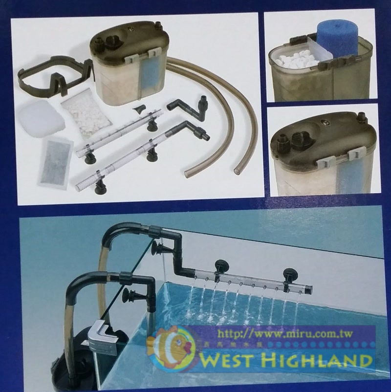 | 其實它標示的流量是指空機.裏面沒有放濾材的情況下... 以我們的經驗.過濾1.5呎的缸就有一點吃力..所以怕會推不動...謝謝 | |