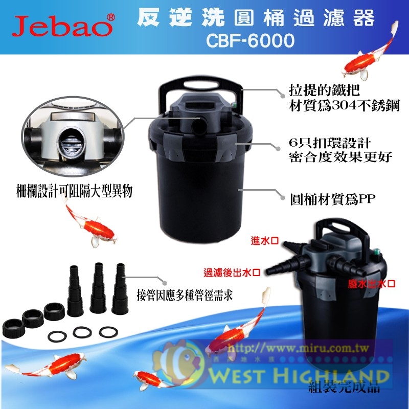 > 過濾設備,馬達 > 過濾器(圓桶、方桶)及相關零配件 > JEBAO捷寶 池塘 大型缸 反逆洗圓桶過濾器 UV-C殺菌燈CBF-6000 G-JB-051