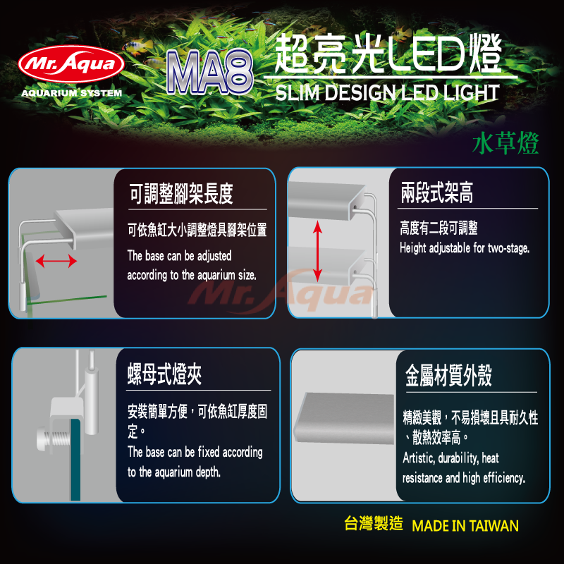 1.採用安規認證零組件,通過水族燈具安規認證。