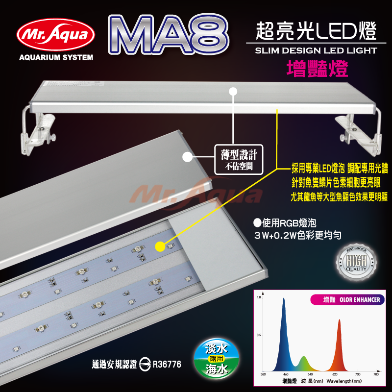 prev next 水族先生MA8 超亮光LED 跨燈 增艷2尺(60cm)增艷
