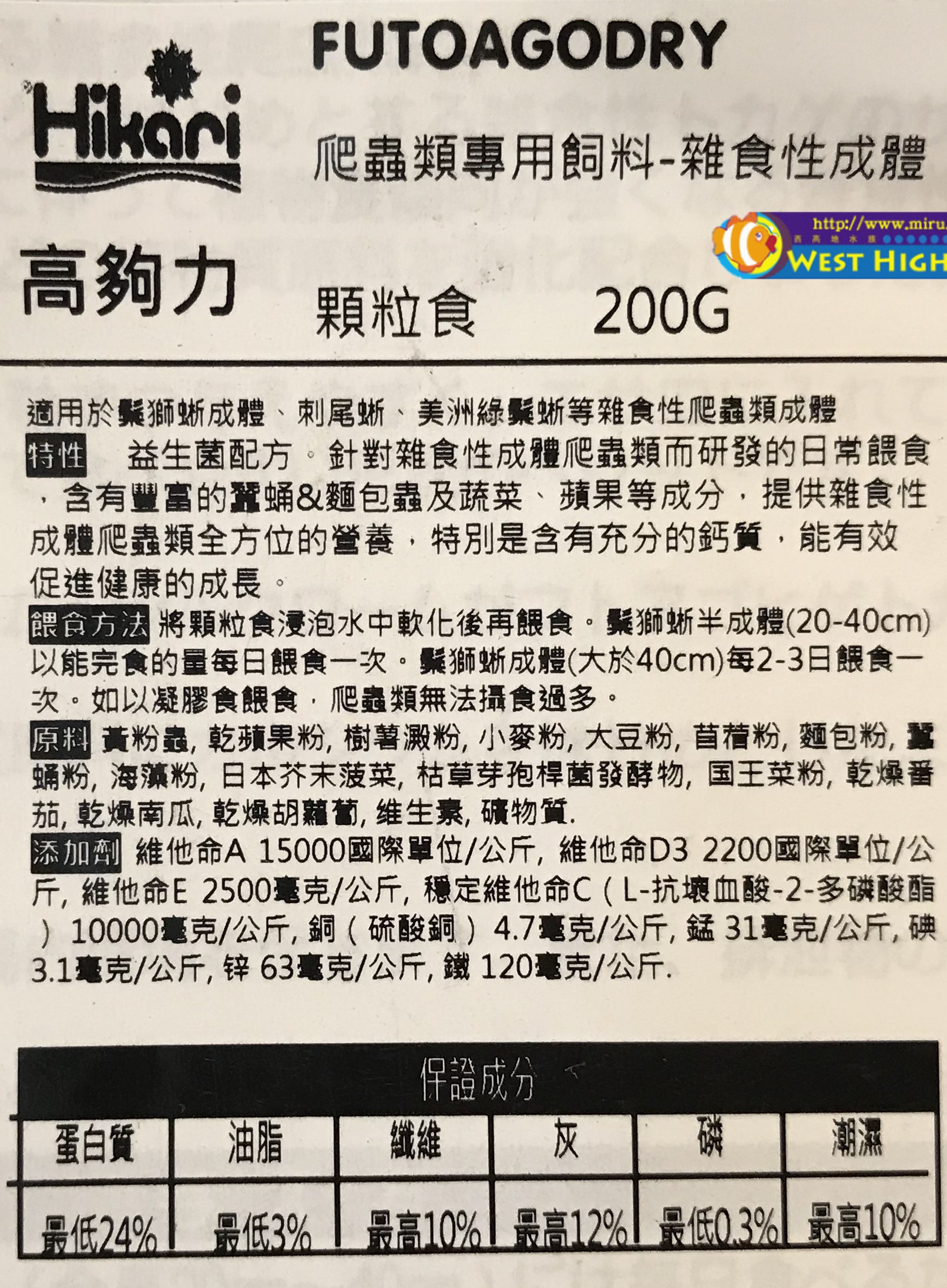 益生菌配方.針對雜食性成體爬蟲類而研發的日常餵食.