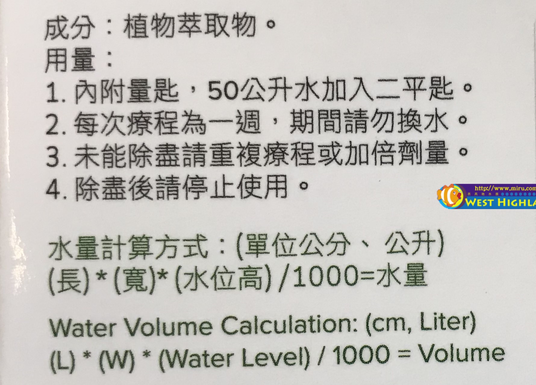 不破壞水質與硝化系統,對魚蝦水草無害。