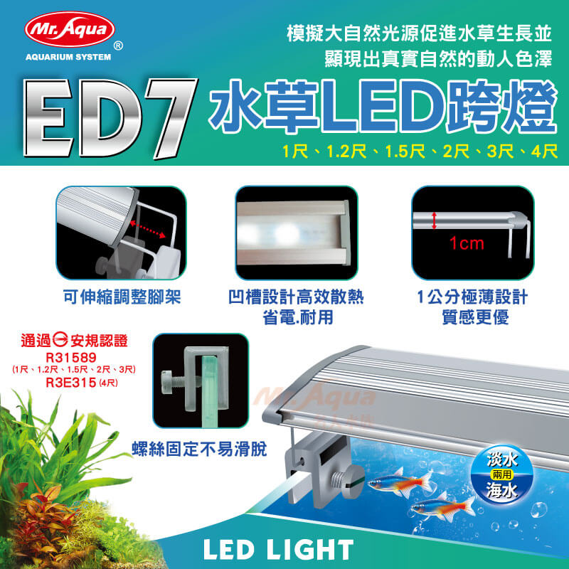 > 藥水,測試劑,水質處理,營養添加劑 > 測試劑> > 水質測試劑、監控器 > 台灣水族先生Mr.Aqua MR.ED7水草LED跨燈2尺