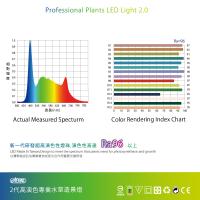 有效提昇光合作用量值,促進水草花青素與葉綠素形成。 2. 新一代研發超高演色性燈珠,發光效率更佳, 運用特殊混光技術與專業光學計算,將演色性從95提高至96, 觀賞色彩更加真實呈現。 3. 8000K清爽新色溫表現,視覺感受更加清新, 觀看草缸水體更透澈。 4. 外殼鋁擠上膜增加耐候性,加強絕緣保護,抗酸鹼腐蝕, 延長燈具使用壽命。 5. 腳架拉高至10cm高,明顯改善前後暗角形成,照射無死角。 6. 搭配光學級擴散板,混光表現更加均勻柔和,觀賞不刺眼。 7. 高演色燈開燈延遲情況,主要是採用更大的電容, 讓電流先跑到電容做緩衝再啟動LED,不讓LED瞬啟是為了保護LED,延長LED燈壽命。 8. 台灣研發生產製造,通過安規認證R45008。吊索需另購