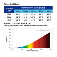 1.適合日間使用的保暖燈,提高飼養環境溫度 2.表面磨砂霧面處理,模擬自然環境柔和光線 3.提供爬寵日常所需的UVA光線,可促進爬寵食慾、