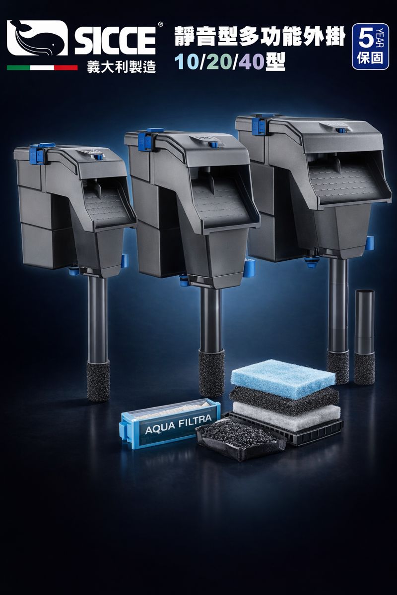 > 過濾設備,馬達 > 過濾器(內置、沉水) > 義大利 SICCE 希捷 ICCE Aqua Filtra 靜音型多功能外掛過濾器20 450L/H
