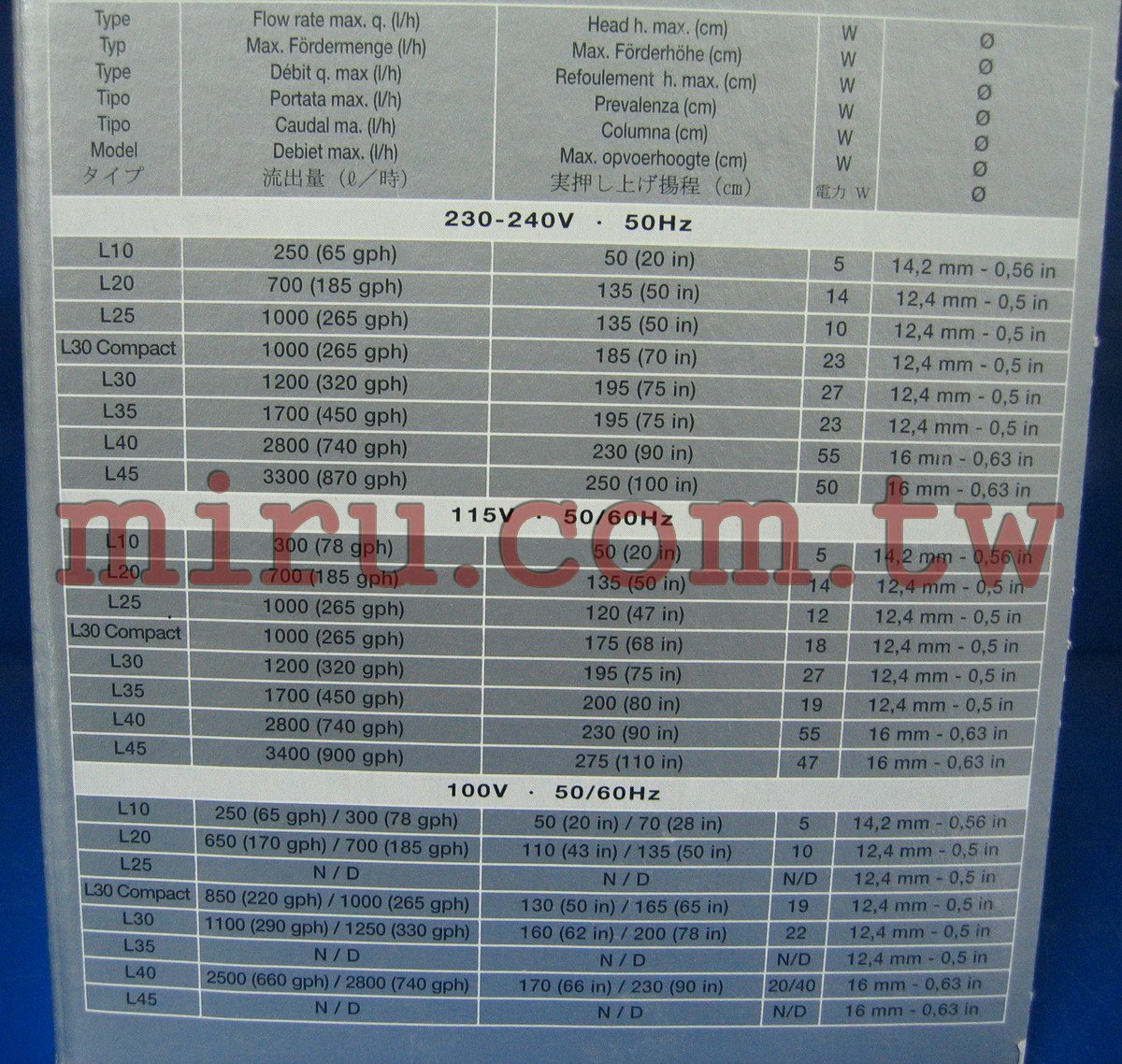 | 出水口是12mm.可以接軟管的.目前我這裡的是110v的.和230v流量應該相同.我們是用在水族箱裡.主要液體沒有腐蝕性應該ok的.謝謝 | |