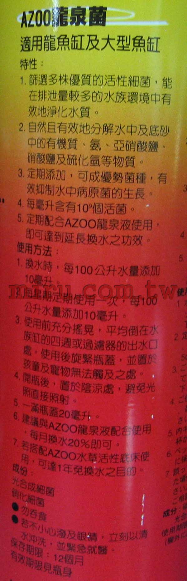 > 藥水,測試劑,水質處理,營養添加劑 > 水質處理劑> > 硝化菌 > AZOO 龍泉菌(500ml)