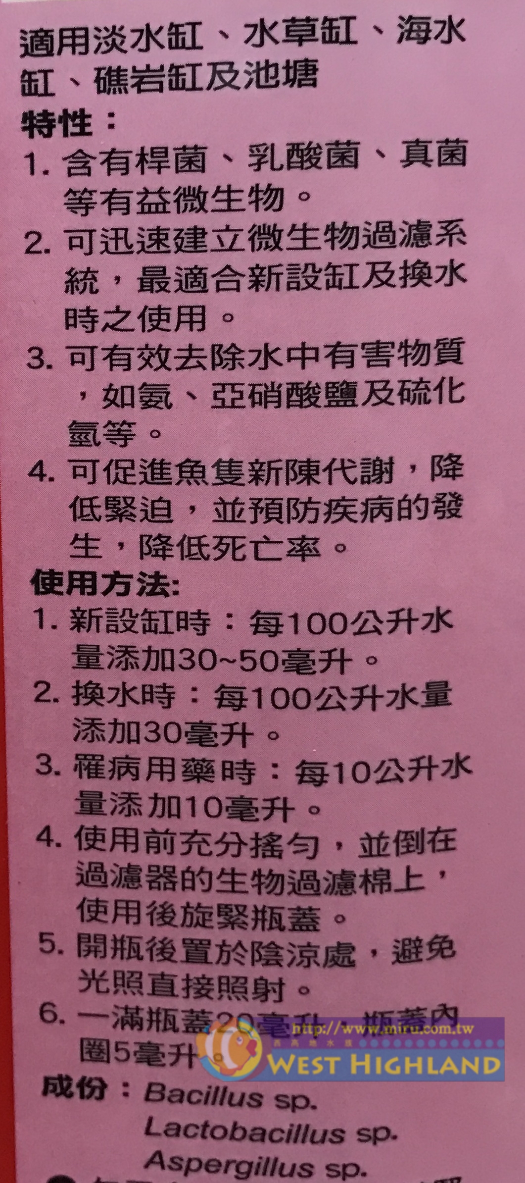並防止有害病原菌之滋長,預防疾病之發生。 可促進消化,抑制消化道中細菌性病原之滋長,防止腸道性疾病之發生。 防止黴疾病之發生。 減低魚類之緊迫,促進魚類之健康成長。 降低殘餌及有機質之殘留,防止疾病之發生