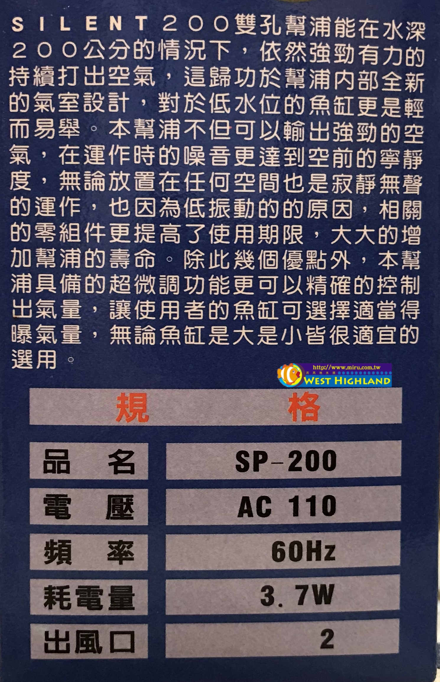 雙孔微調SP200打氣水深可達200cm,