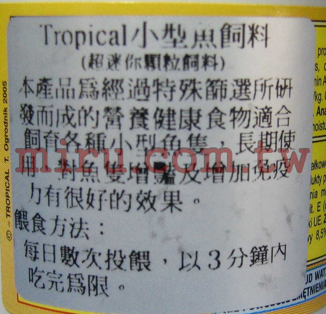 > 飼料,餵食設備 > 小型魚/孔雀魚飼料/燈科魚飼料/幼魚飼料 > Tropical德比克小型魚、燈科顆粒飼料(75ml)