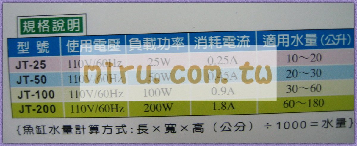 | 規格,容量 | 25W,50W,100W,200W,300W,500W |