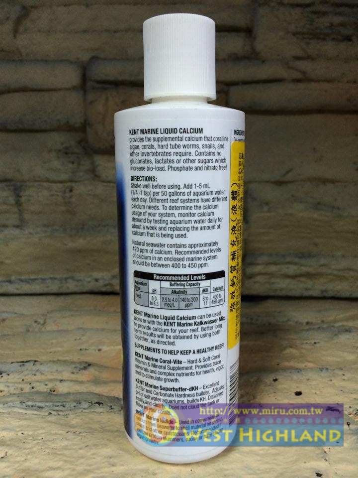 > 海水相關用品 > 海水魚飼料、營養劑/軟體飼料、營養劑 > 美國KENT MARINE 強效鈣質補充液(鈣水) 8oz