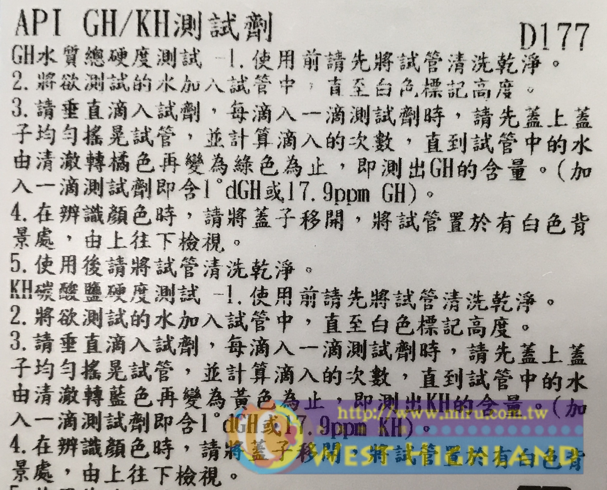 內容物GH及KH各1罐 大多數的魚類或水草都只能在其最適合的硬度範圍環境下生存。 水族箱中常用的總硬度表示法為德制總硬度(GH), 1°dGH相當於100毫升蒸餾水中含有1毫克的氧化鈣含量。 |