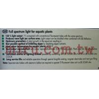 | 商品說明 | 水族箱植物專用的太陽光燈管 光色及光譜範圍皆最適合水中植物 全光譜,完全模擬真實陽光,可抑制藻類生長 完全接近自然光(1A色光) 色溫4,000k |