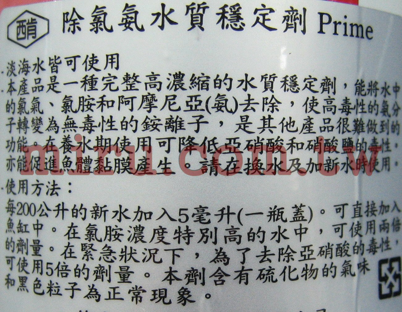 淡海水皆可適用 本產品是一種完整高濃縮的水質穩定劑,能將水中的氯氣、氯胺和阿摩尼亞(氨)去除, 使高毒性的 氨分子轉變為無毒性的銨離子,是其他產品很難做到的。 在養水期使用可降低亞硝酸和硝酸鹽的毒性。亦能促進魚體黏膜產生。 請在換水及加新水時使用。 使用方 法:每200公升的新水加入5毫升(一瓶?#92;)。 可直接加入魚缸中。在氯胺濃度特別高的水中,可使用兩倍的劑量。 在緊急狀況下,為了去除亞硝酸的毒 性,可使用5倍的劑量。 本劑含有硫化物的氣味和黑色粒子為正常現象。 |