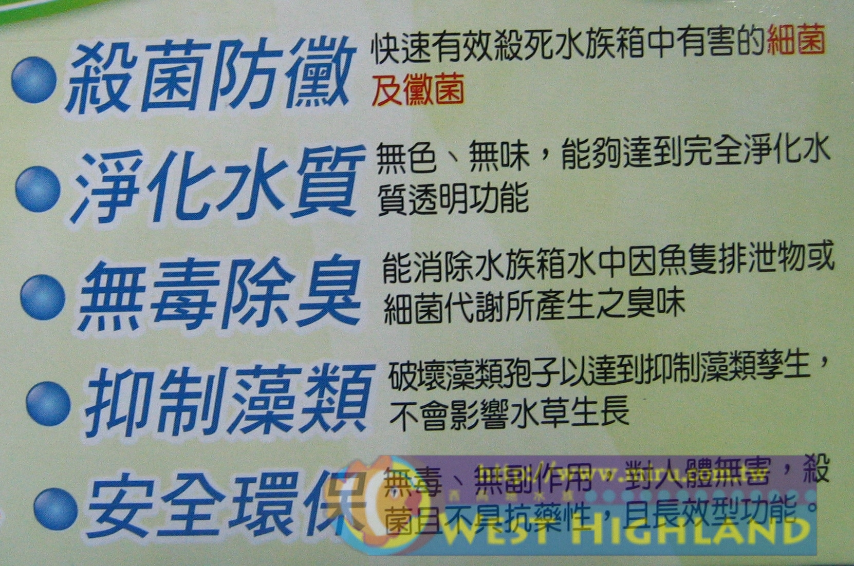 1殺菌防黴、淨化水質、無毒除臭、抑制藻類、安全環保、 可除氯、降亞硝酸、降阿摩尼亞 2親水性佳、無抗藥性,可配合藥物同時使用,屬長效型產品。 能淨化水質及去除水中魚腥味,提升魚隻生長環境,減少魚隻因生病而死亡 |