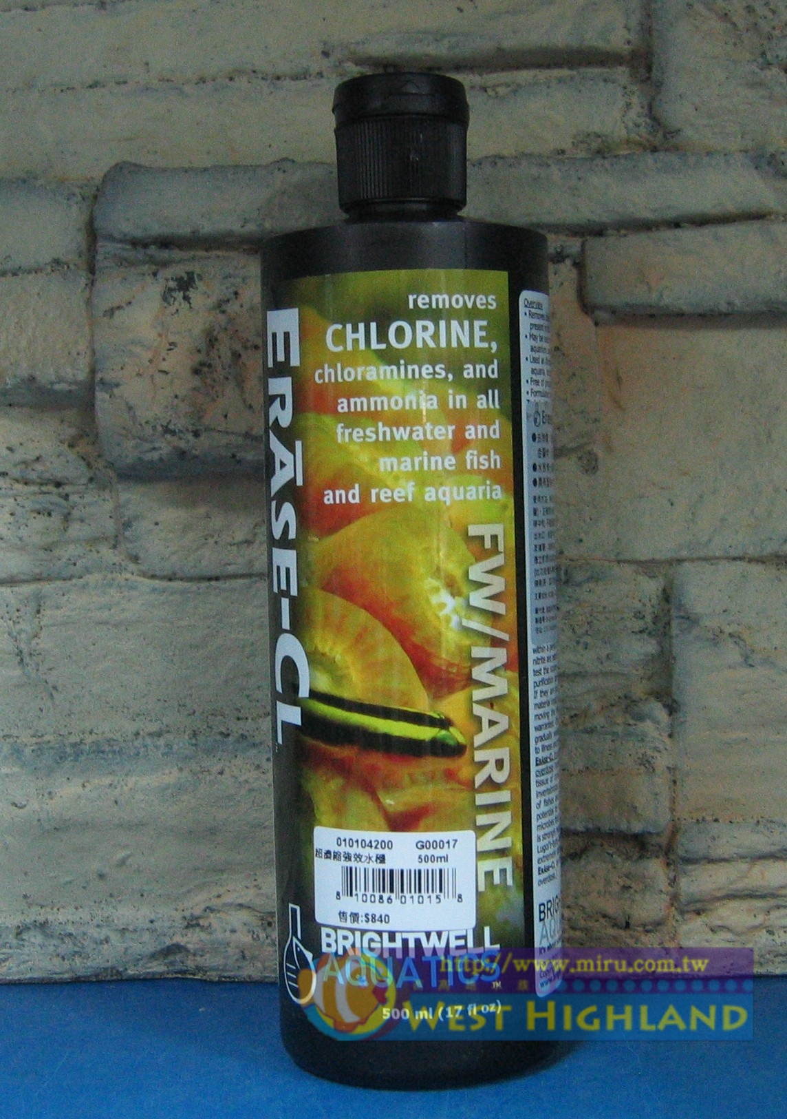 > 藥水,測試劑,水質處理,營養添加劑 > 水質處理劑> > 水質穩定劑 > 美國BWA Erase-CL超濃縮強效水穩/水質穩定劑500ml(淡.海水皆可使用)
