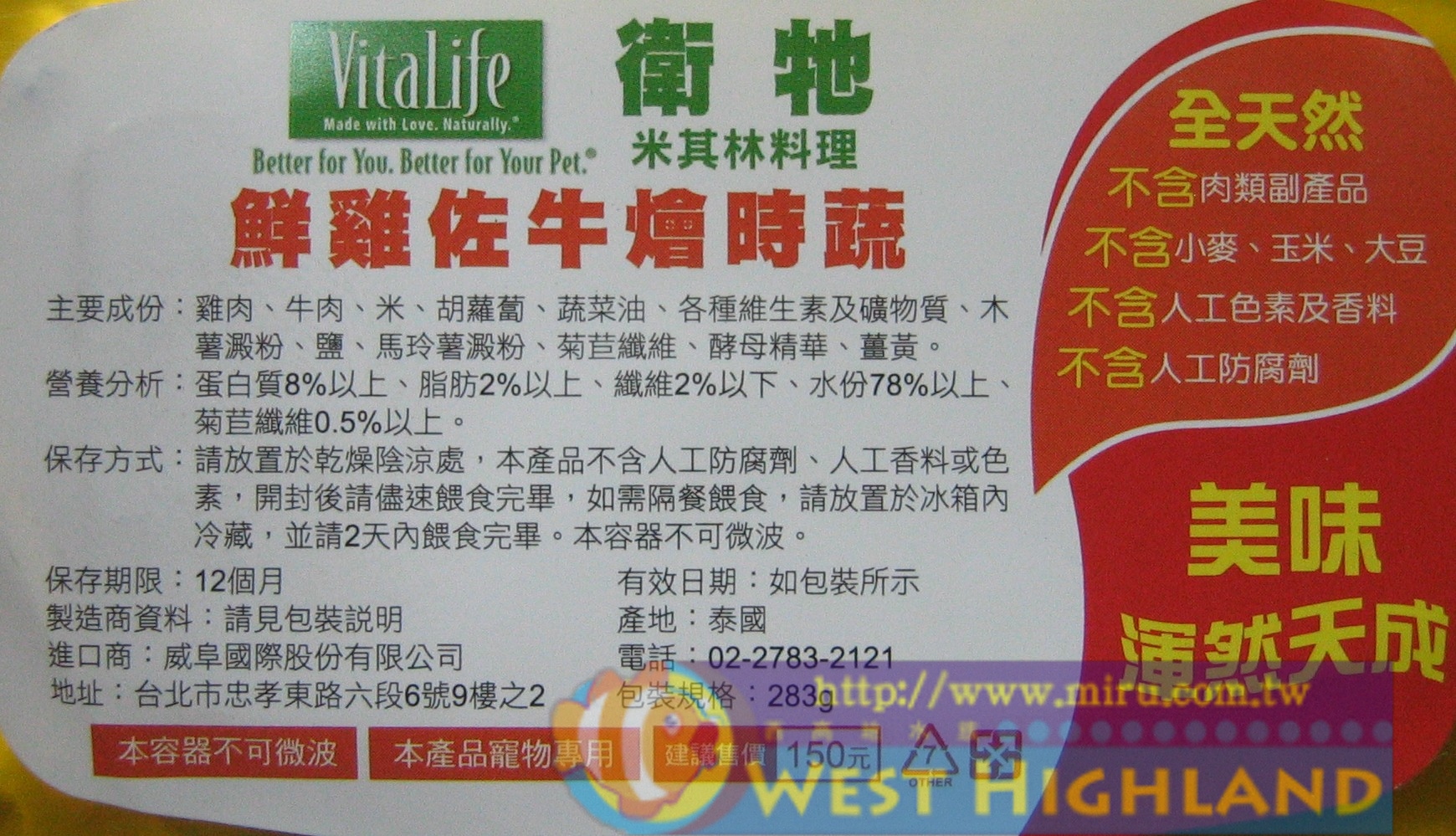 衛牠 Vitalife 米其林料理 283克 牛肉燴鮮蔬