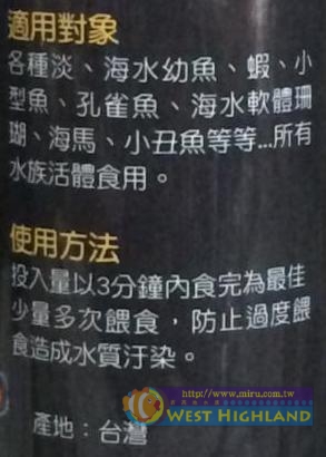 此產品含有豐富天然高蛋白質及不飽和脂肪酸, 具有提高魚、幼蝦及水族活體生物的免疫力及抗體、 減少罹病率,且嗜口性超佳。