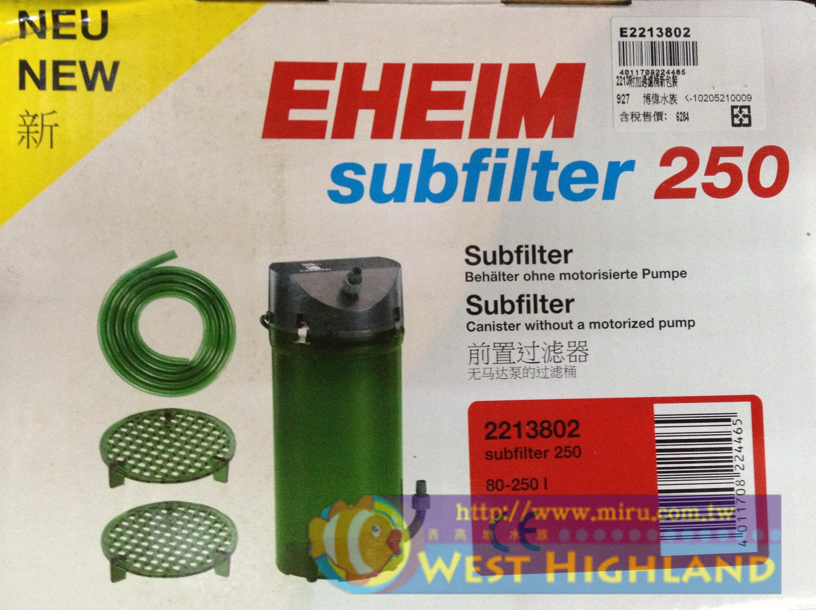 > 過濾設備,馬達 > 過濾器(圓桶、方桶)及相關零配件 > 德國伊罕EHEIM 2213前置過濾機新式樣(不含濾材)附軟管.隔層