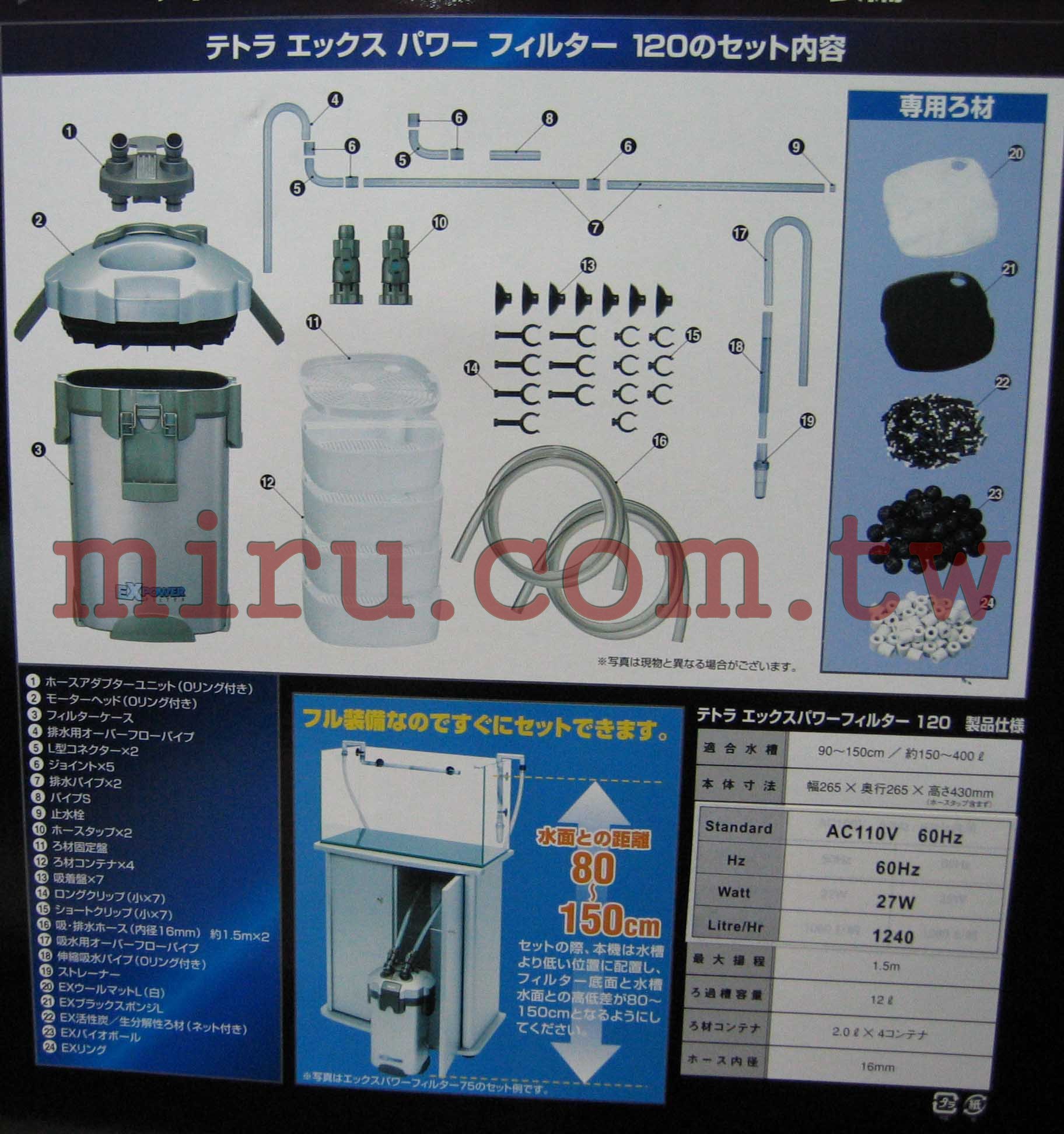> 過濾設備,馬達 > 過濾器(圓桶、方桶)及相關零配件 > 德國Tetra EX120 EX POWER 120方桶(圓桶)過濾器